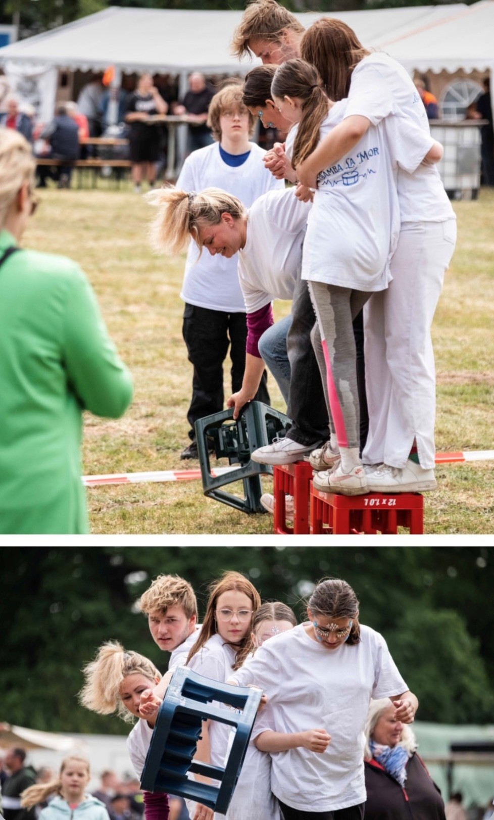 Doch es blieb nicht beim Zuschauen: Bei den Spaßwettkämpfen für Jedermann durfte das ganze Dorf mitmischen! Kistenlauf, Schläucheflechten, Schwammtransport und vieles mehr sorgten für jede Menge Gelächter und gute Laune. Gruppen aus dem Ort und der Umgebung – vom Erntefestkomitee über die Landjugend bis zum Piratenchor – traten gegeneinander an. Den Sieg holte sich schließlich die Ortswehr OHZ.