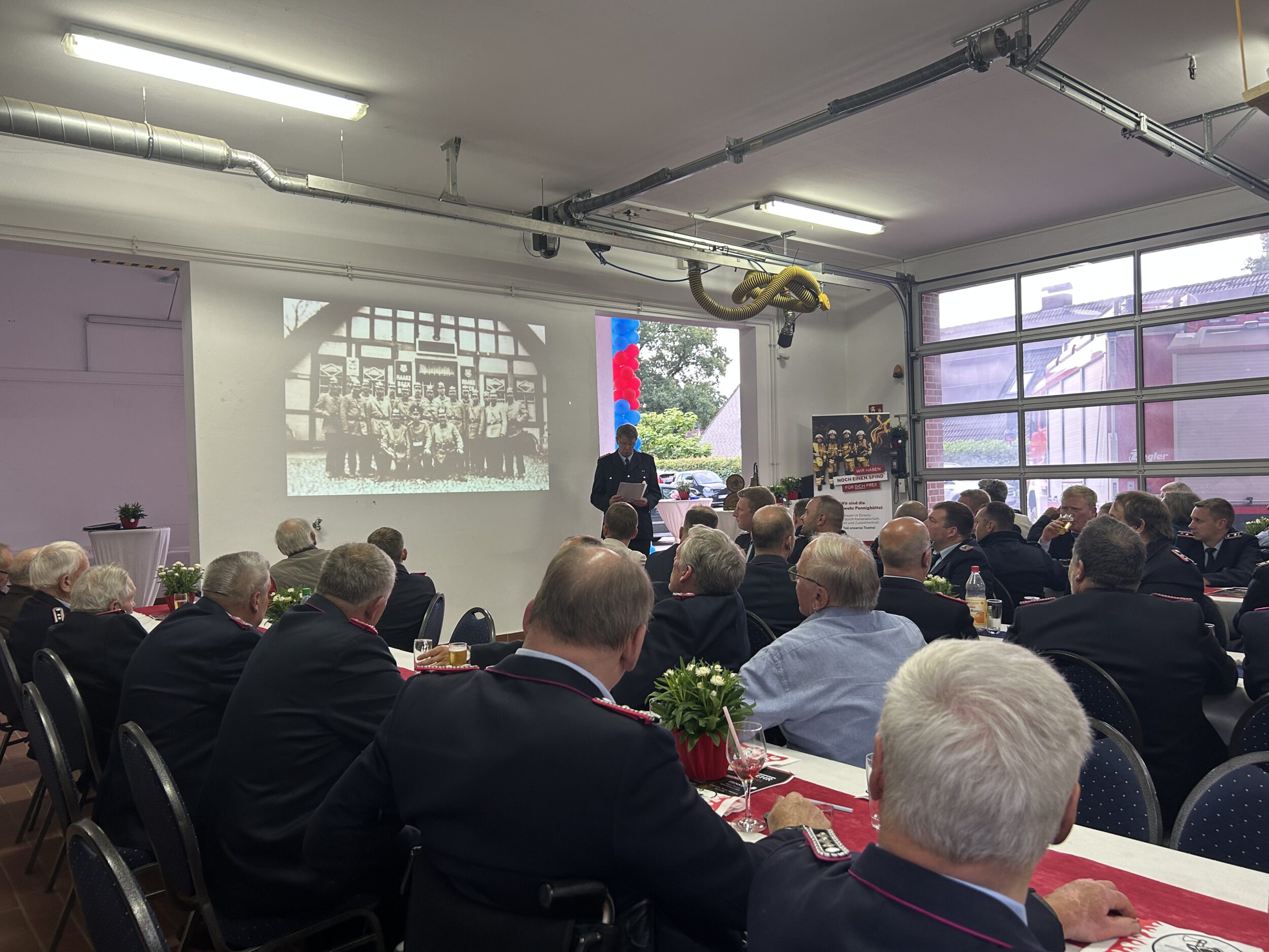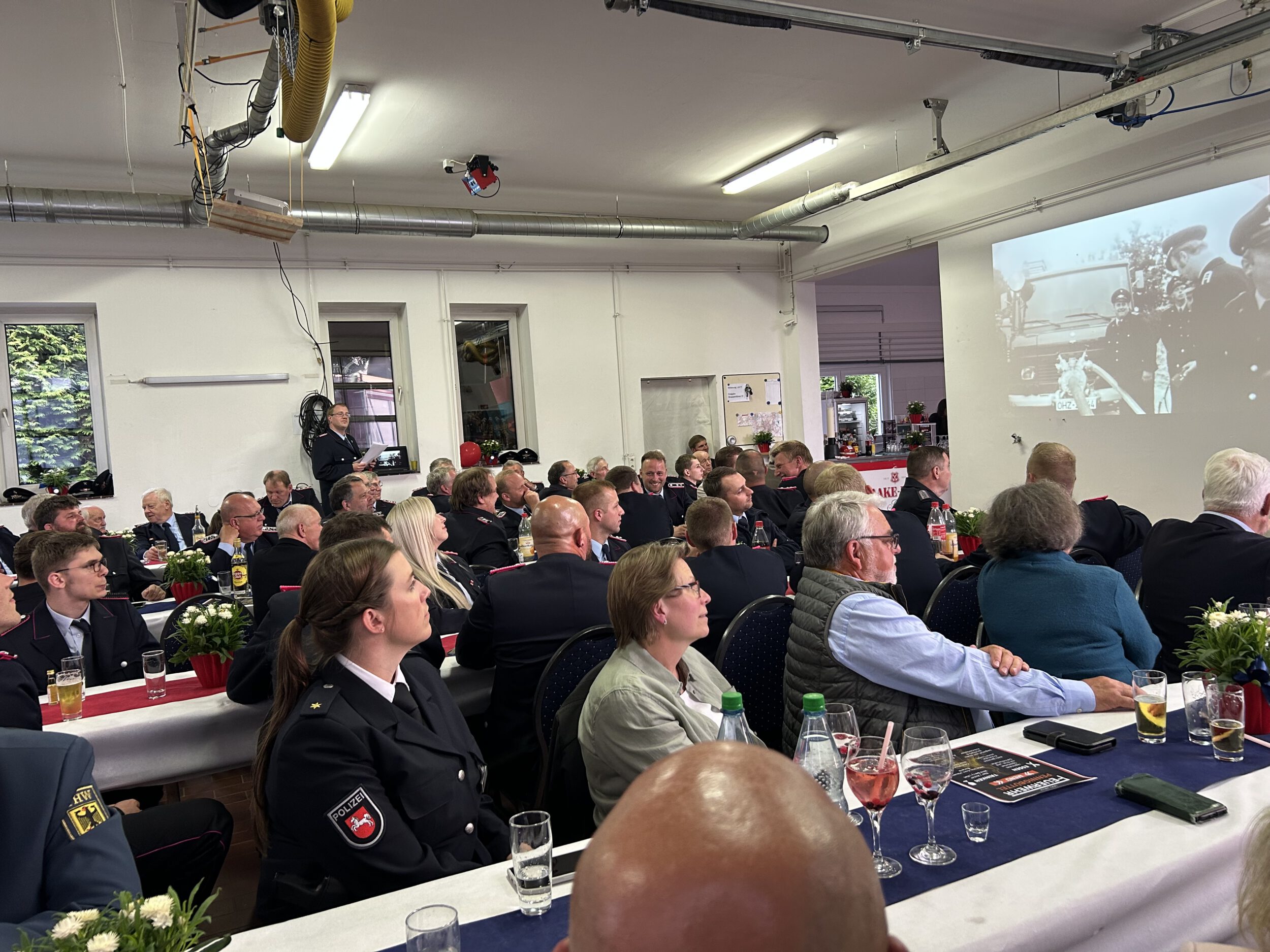 Nach einem gemeinsamen Essen blickten alle gemeinsam auf 100 Jahre Feuerwehrgeschichte zurück. Alte Fotos, Anekdoten und beeindruckende Zahlen machten deutlich, wie viel Engagement, Mut und Herzblut in einem Jahrhundert Feuerwehrdienst stecken.