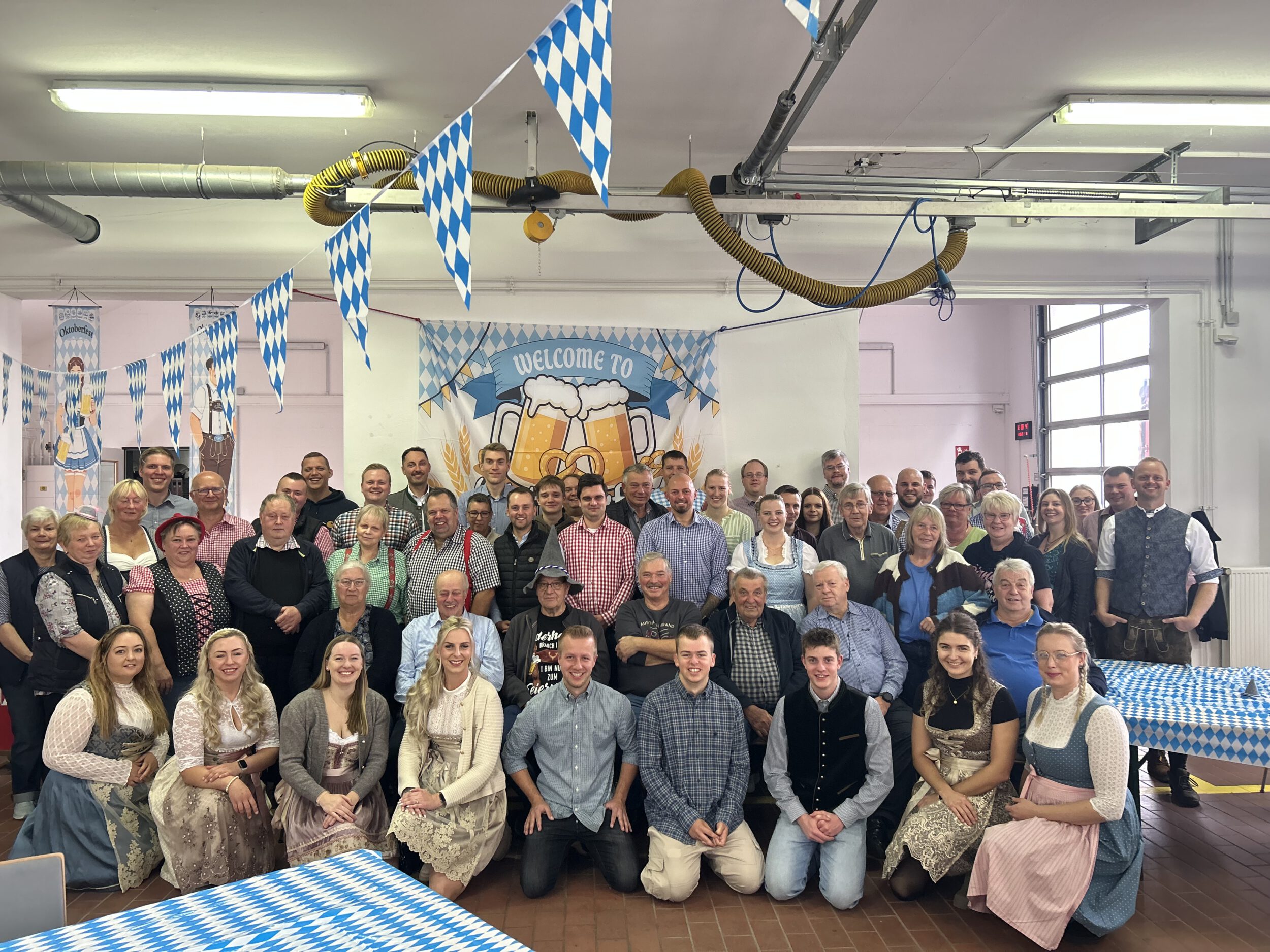 Nach einem Jahr voller Vorbereitung, Einsatz und Feierlichkeiten war es Zeit, das Jubiläumsjahr gebührend abzuschließen. Am 3. Oktober traf sich die Feuerwehrfamilie zur internen Oktoberfest-Feier. Die Fahrzeughalle war liebevoll im bayerischen Stil geschmückt – mit weiß-blauen Girlanden, Lichterketten und rustikalen Tischen.