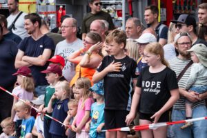 Für die Kinder gab es ein wahres Paradies: Hüpfburg, Löschwand, Schlauchkegeln, Kindertattoos und ein Glücksrad mit tollen Preisen. Die Fotoaktion von Katrin Priess, bei der Familien in Feuerwehrkleidung vor einem Einsatzfahrzeug posierten, wurde zum Highlight des Tages – ein Erinnerungsfoto, das sicher viele Wohnzimmer ziert.