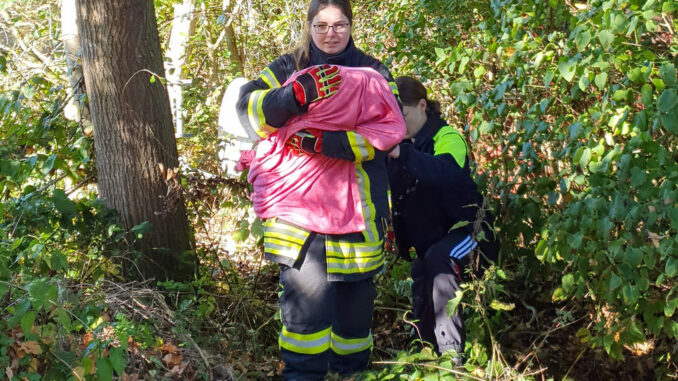 Ein Kranich sorget am Samstag für den Einsatz der Ortsfeuerwehr Teufelsmoor. Dieser konnte sich aus einem dichtbewachsenen Graben neben der Teufelsmoorstraße nicht befreien. Besorgte Anwohner alarmierten daraufhin die Feuerwehr. Mittels einer Steckleiter erreichten die Einsatzkräfte das Tier und konnten es mit einem beherzten Griff befreien. Da der Kranich nicht flugfähig wirkte, wurde er vorsorglich in die Wildtierauffangstation in Teufelsmoor gebracht, und dort versorgt.