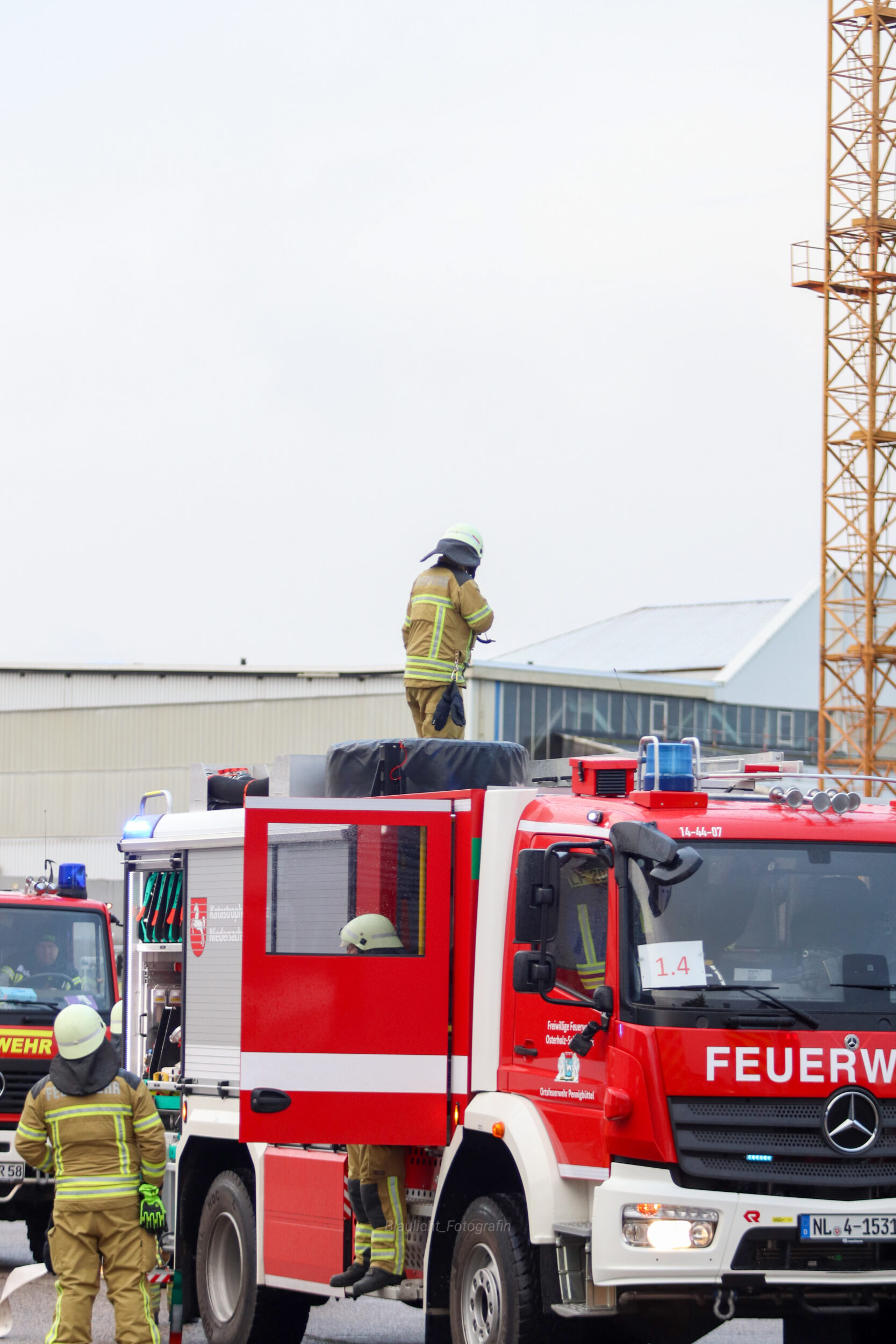 Auf dem weitläufigen Werftgelände bestanden ausreichend Platz und Möglichkeiten, sich einer Reihe von anspruchsvollen Szenarien zu stellen. Jörg Laude, stellv. Kreisbrandmeister, hatte die verschiedenen Szenarien für die in vier Fachzüge aufgeteilten Einsatzkräfte ausgearbeitet. „Die heute geübten Einsätze können uns so auch jederzeit im Alltag begegnen“, so Laude. „Auch wenn einige davon sicherlich außergewöhnlich waren wie beispielsweise Unfälle mit Booten“.
