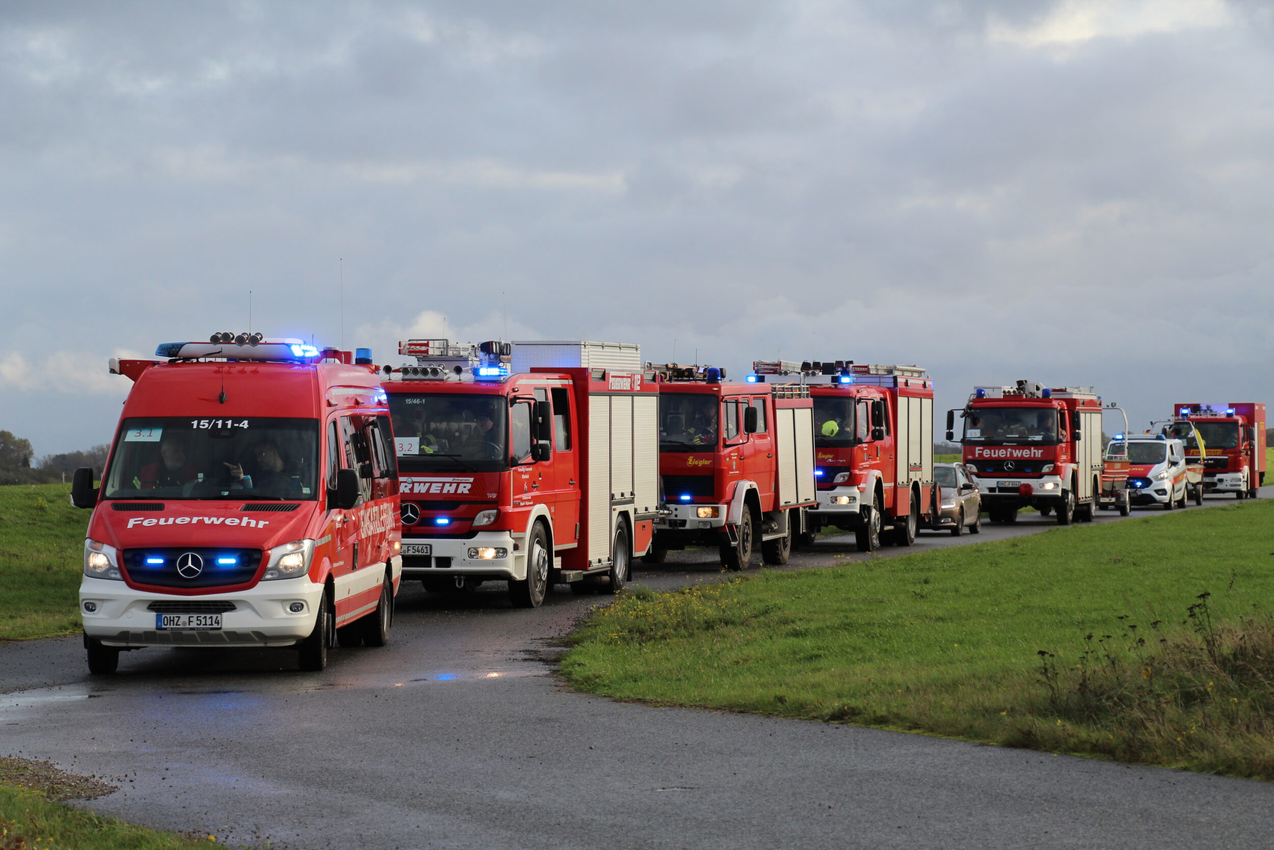 Über 120 Einsatzkräfte der Feuerwehren im Landkreis Osterholz trafen sich Ende Oktober zu einer gemeinsamen Großübung auf dem Gelände der Fassmer Werft in Lemwerder. Verstärkt wurden sie von Kräften der DLRG und des THW. Zuvor waren die rund 25 Einsatzfahrzeuge in einem gemeinsamen Konvoi von der Feuerwehrtechnischen Zentrale in Pennigbüttel ins Übungsgebiet aufgebrochen. Die Stadtfeuerwehr war mit Fahrzeugen und Person aus Osterholz-Scharmbeck, Pennigbüttel und Scharmbeckstotel vertreten.