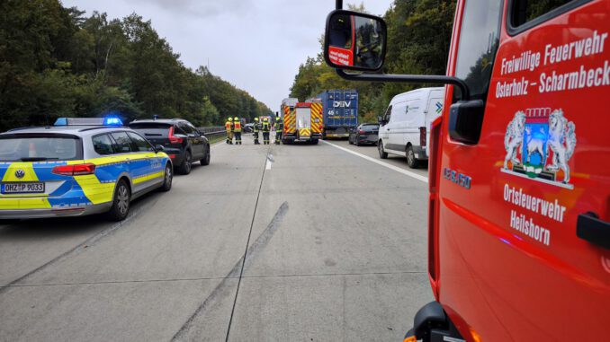 Die Ortsfeuerwehr Heilshorn wurde am Mittwochnachmittag zusammen mit den Ortsfeuerwehren Ihlpohl / Platjenwerbe, Eggestedt / Brundorf und Schwanewede zu einen Verkehrsunfall mit eingeklemmter Person auf der Bundesautobahn 27 alarmiert.
