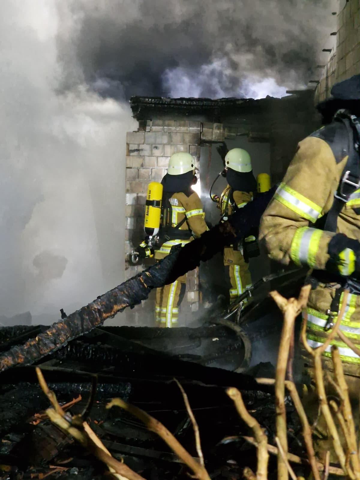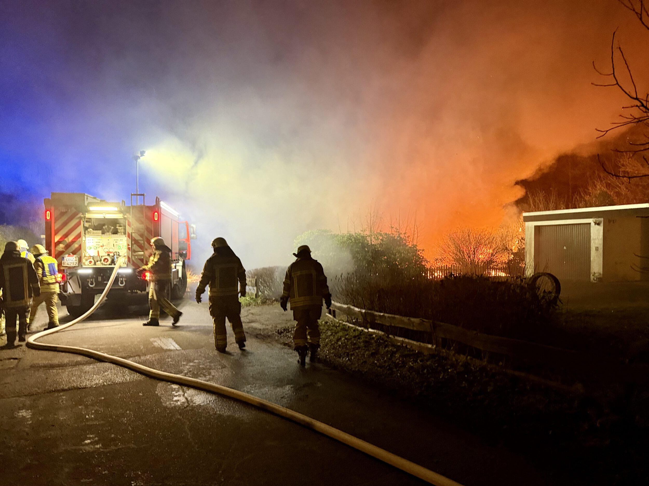 Da die Flammen drohten, auf das Dach des Wohnhauses überzugreifen, wurde das Alarmstichwort erhöht und die Ortsfeuerwehren Osterholz-Scharmbeck und Scharmbeckstotel nachalarmiert.