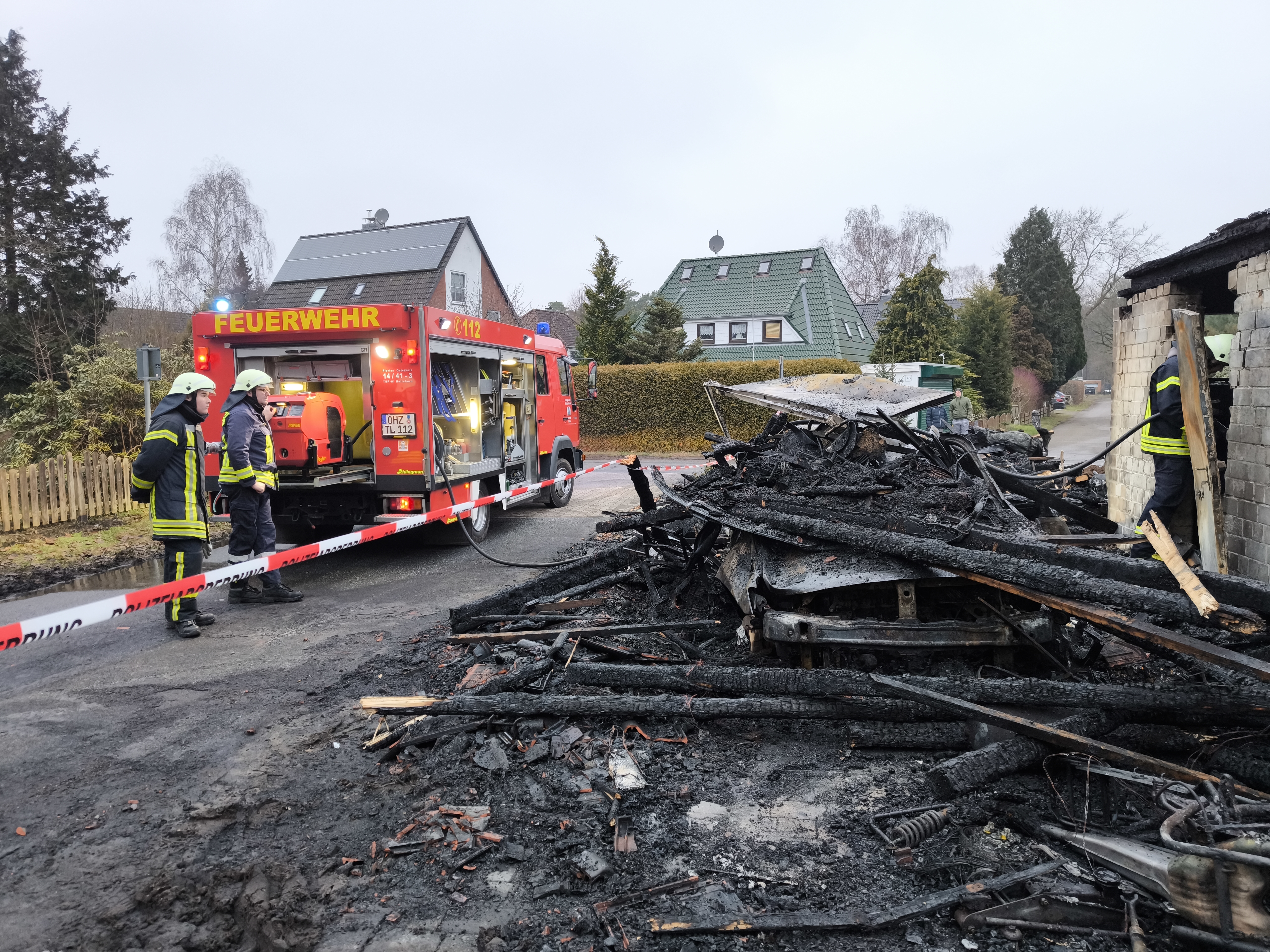 - Alarmstichwort: Carportbrand / Gebäudebrand / Brandnachschau