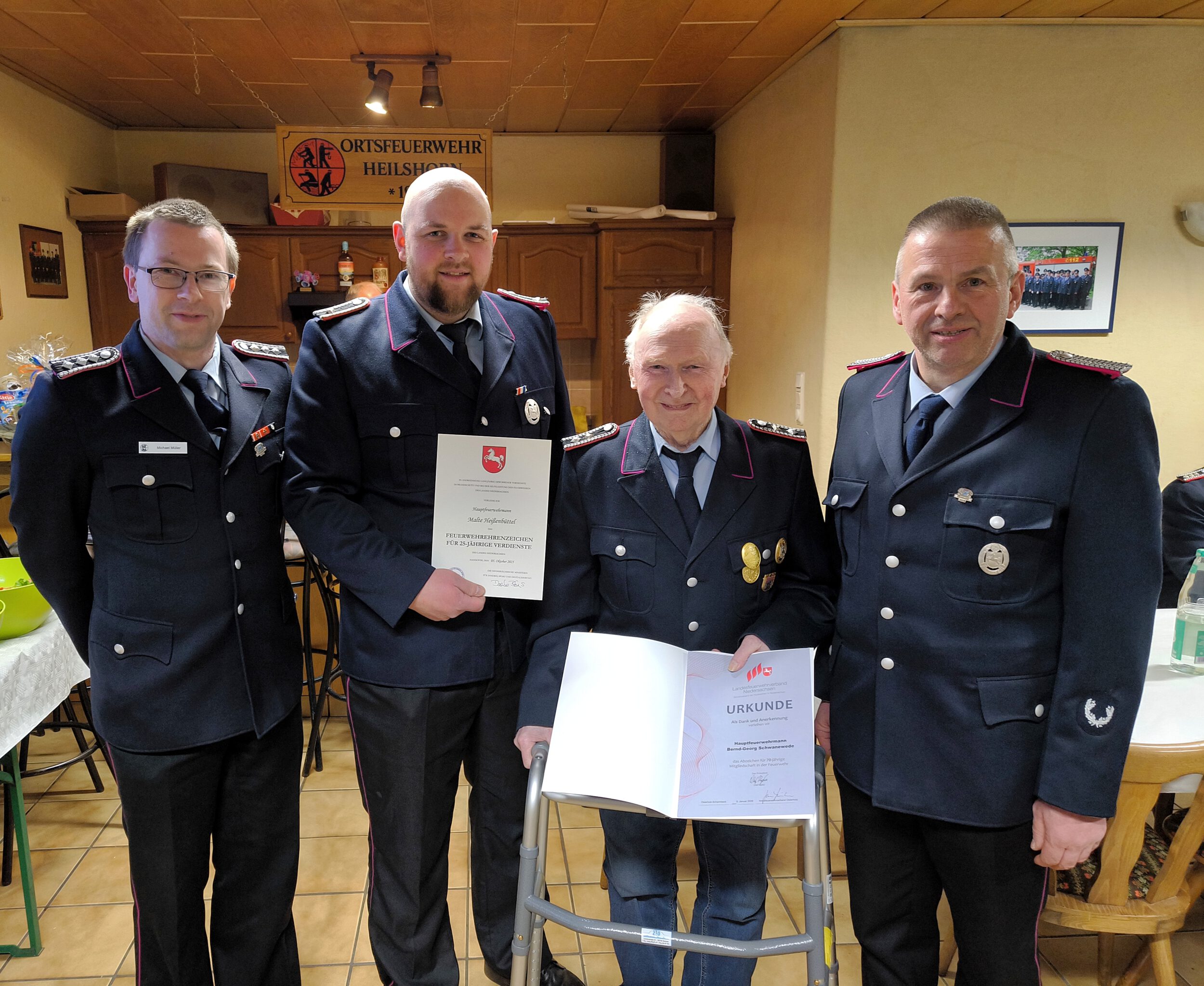 Bei der Ortsfeuerwehr Heilshorn standen in diesem Jahr zwei Ehrungen an. Der stellv. Bürgermeister Klaus Sass ehrte den Hauptfeuerwehrmann Malte Heißenbüttel für 25-Jährige Verdienste.