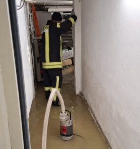 Die Einsatzkräfte brachten Tauchpumpen in Stellung und leiteten das Wasser kontrolliert nach draußen. Dadurch konnte größerer Schaden an den Anlagen verhindert werden. Anschließend wurde das Objekt an einen Verantwortlichen übergeben.
