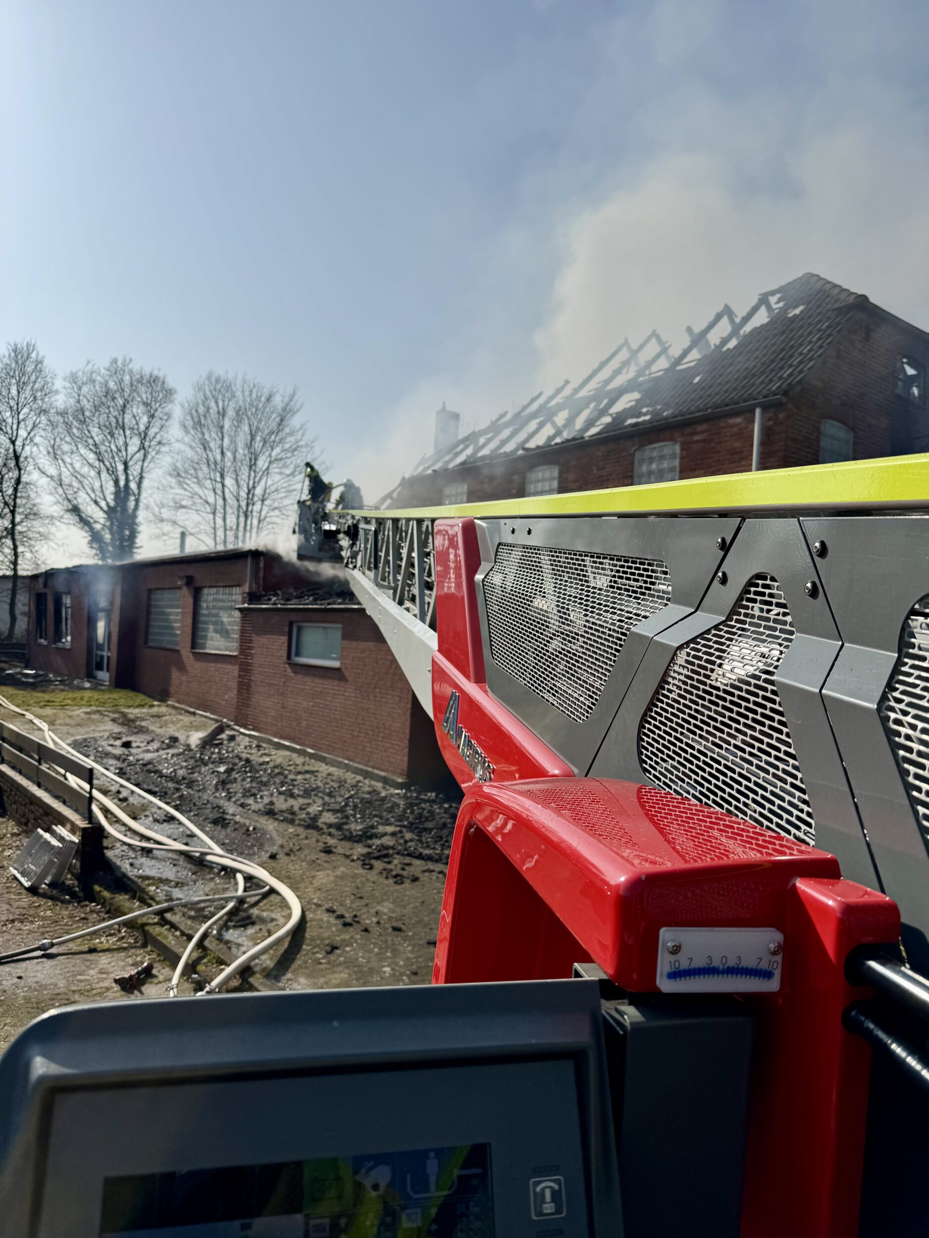 Zur Unterstützung der Löscharbeiten wurde die Drehleiter der Ortsfeuerwehr Osterholz-Scharmbeck eingesetzt. Kurze Zeit später wurde zudem die Ortsfeuerwehr Scharmbeckstotel alarmiert, um weitere Atemschutzgeräteträger zur Einsatzstelle zu bringen.