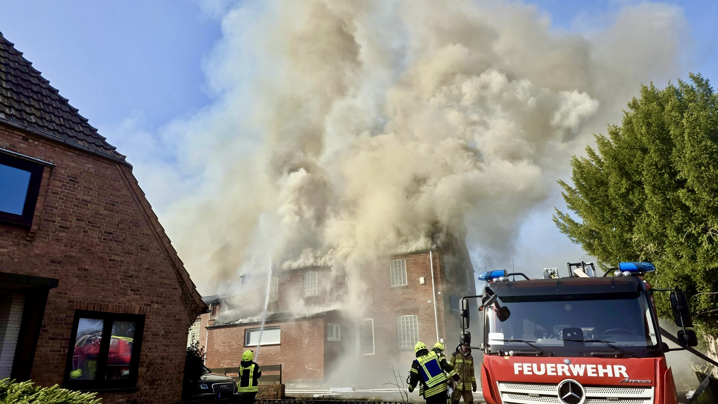 Die Ortsfeuerwehr Osterholz-Scharmbeck wurde am Montagvormittag zur Unterstützung der Feuerwehr Ritterhude zu einem Dachstuhlbrand in voller Ausdehnung in die Straße Im Orth alarmiert.