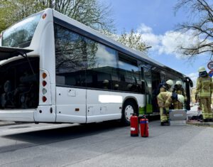 Der Busfahrer bemerkte die Brandentwicklung frühzeitig, setzte über seine Leitstelle die Alarmkette in Gang, brachte das Fahrzeug zum Stehen und sorgte dafür, dass alle Fahrgäste den Bus unverletzt verlassen konnten. Anschließend leitete er eigenständig erste Löschmaßnahmen mit einem Feuerlöscher ein und konnte so eine weitere Ausbreitung des Brandes verhindern.
