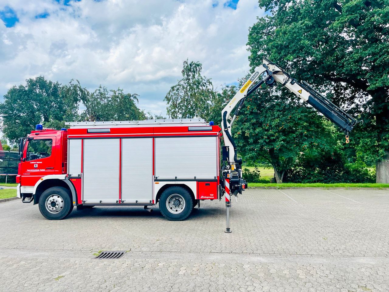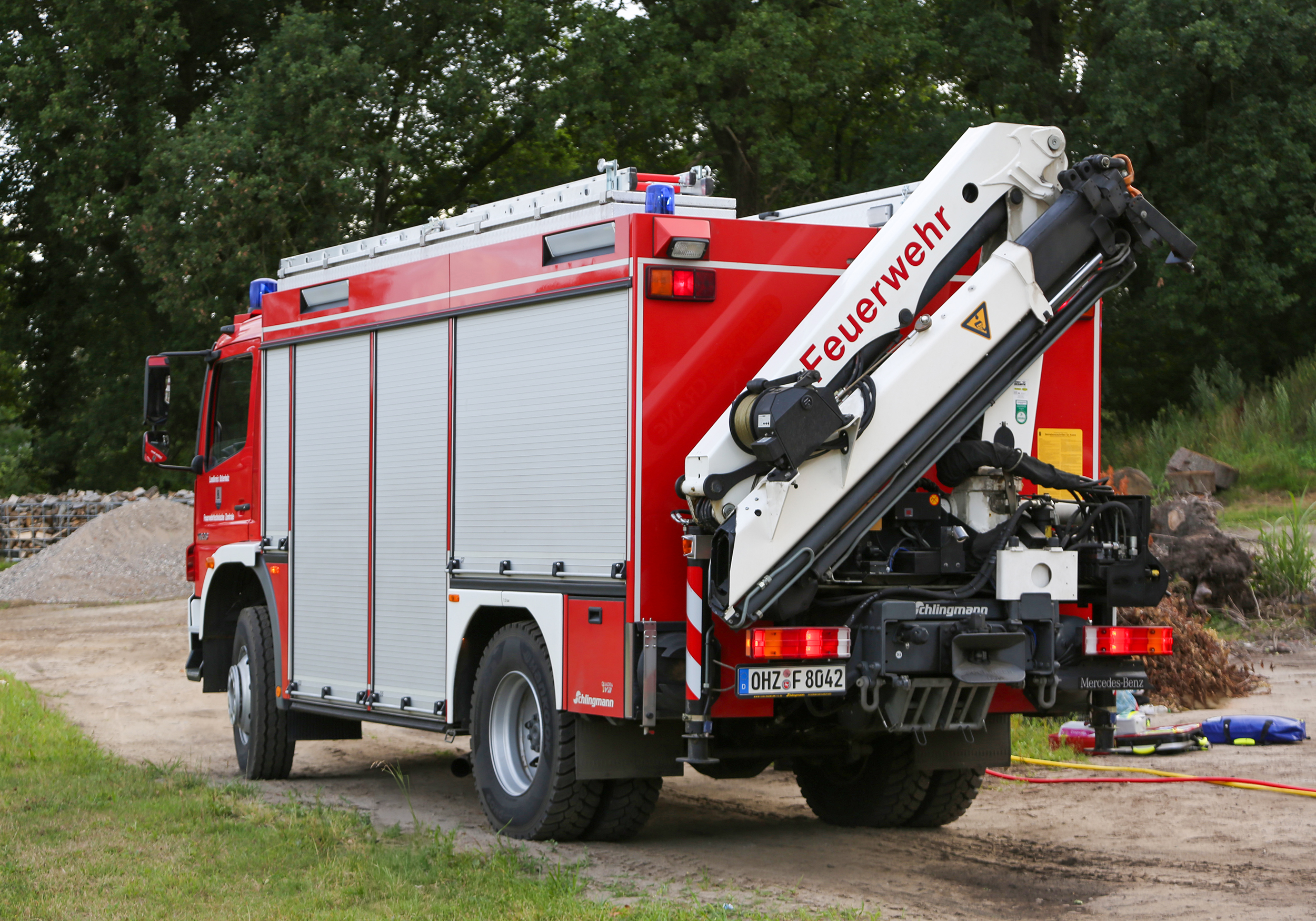 Besetzt mit einem Trupp dient der RW-Kran auch als Zugfahrzeug für das Mehrzweckboot. Der Rüstwagen ist ein Fahrzeug des Landkreises Osterholz, der von der Ortsfeuerwehr Osterholz-Scharmbeck im Einsatzfall besetzt wird und im dortigen Feuerwehrgerätehaus stationiert ist.